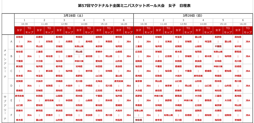第57回マクドナルド全国ミニバスケットボール大会